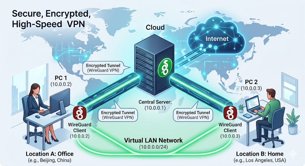通过wg我们可以轻松的组件一个局域网。